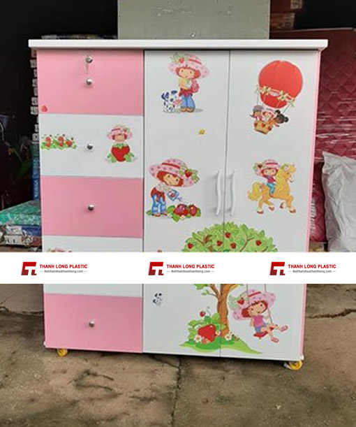 Mẫu tủ quần áo màu hồng cho bé gái này là một trong những mẫu tủ nhựa rất phù hợp với những bé học mầm non, cấp một với hình ảnh những cô công chúa xinh đẹp, tài năng – một hình tượng yêu thích của tất cả những bé gái. Đây lại là một mẫu tủ làm bằng gỗ MDF có độ bền cao, bên ngoài được phủ lớp sơn Lacker dày 7 lớp chống trầy xước, đẹp và sáng bóng như sơn ôtô, đặc biệt an toàn cho trẻ.